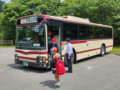 山道に少し車酔いした人もいましたが、バスの中でも元気に過ごしていました。