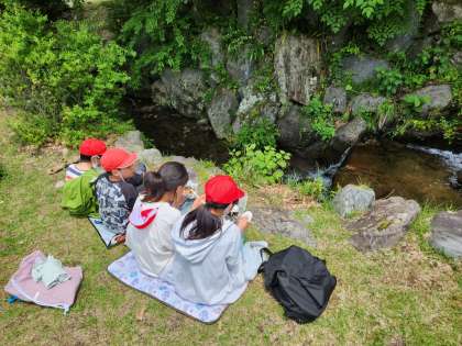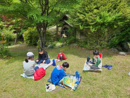 自然に囲まれた芝生の上で、美味しいお弁当をいただきます。