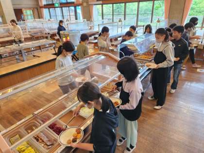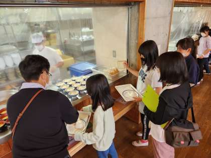 朝食は最初に白ごはんかパンかを選ぶのですが、衣笠小学校の子どもたちは半々くらいでした。