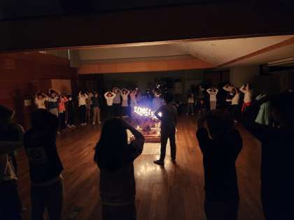 エールマスターのかけ声に合わせて、間違えないように、動きます。ついつい引っかかって、