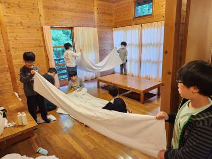 自分の身支度が整ったら、まずは寝具の片付けです。
