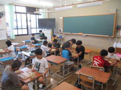将棋・オセロ・百人一首クラブは、今日は将棋の対戦を楽しんでいました。ルールがわからない子には、知っている子が丁寧に教えてくれている姿もあり、対戦相手を変えながらみんなで楽しんでいました。