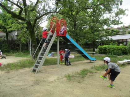 たくさん歩いたので、途中、小松原公園で休憩したのですが、子どもたちは遊具で遊んだり、お花を見つけたりとまだまだ元気でした。