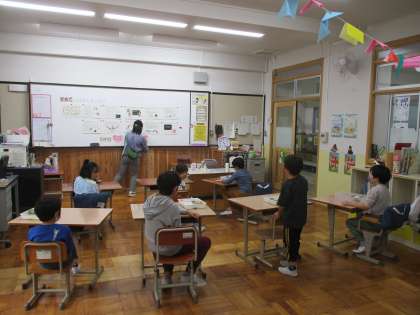 お楽しみです。体育館で「ひたすらオセロ」をしました。2グループに分かれて対戦しました。仲良くカードを夢中でひっくり返していました。楽しい時間はあっという間にすぎて「また、一緒に遊ぼうね。」と別れを惜しみつつ帰りました。楽しい交流会でした。