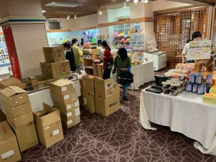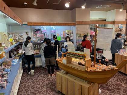 慶野松原荘の売店でお土産を家族や自分のために買っています。