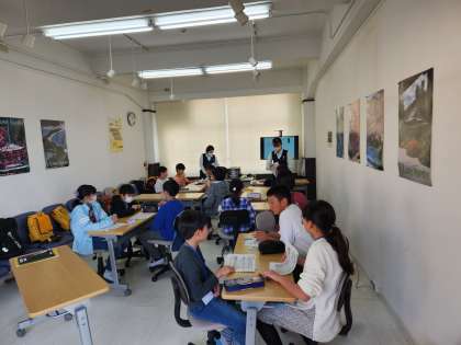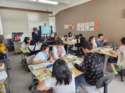 井筒八ッ橋本舗では、グループでアイデアを出し合い、商品を魅力的に見せるためのポップづくりをしていました。