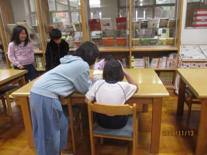 11月13日〜17日衣笠小学校の読書週間です。図書委員の児童の読み聞かせやクイズなどがあります。図書委員の児童は、休み時間に図書館に来てクイズのヒントを出してくれたり読み聞かせの手伝いをしてくれたりしています。たくさんの本に親しんでくれる週間になってほしいです。