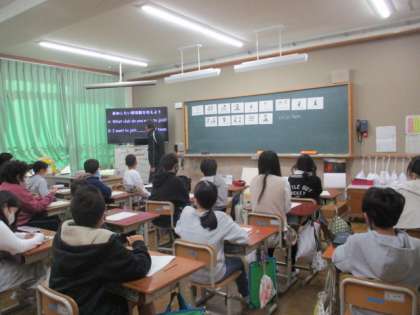 今日は6年生の教室に、衣笠中学校より英語科の先生に来ていただき、出前授業をしていただきました。