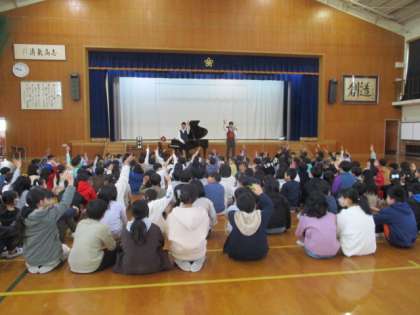 トルコ行進曲やルパン三世のテーマ曲など、なじみのある曲もたくさん演奏していただきました。ルパン三世のテーマが流れた時には、学習発表会で同曲を演奏した5年生からは歓声が上がっていました。