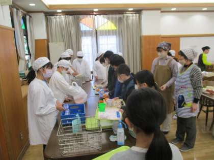 今日は5年生が使いましたが、低学年の時に使って以来なので、最初に、準備や配膳の仕方を確かめました。