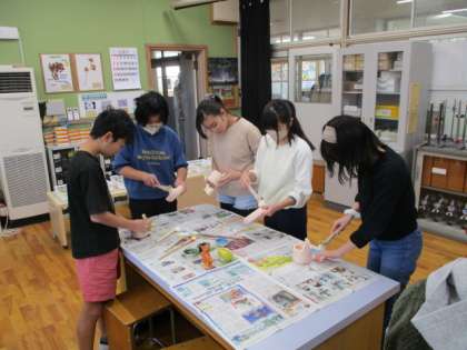 今日は地域にお住いの陶芸家の方にお越しいただき、6年生が陶芸体験をさせていただきました。