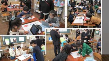 わかば学級は図画工作科、1年1組は音楽科、3年2組は総合的な学習の時間、6年1組は国語科で授業を公開しました。