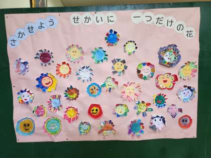 校内の掲示板にも、6年生へおめでとうの気持ちを込めた各学年からの掲示物が飾られています。