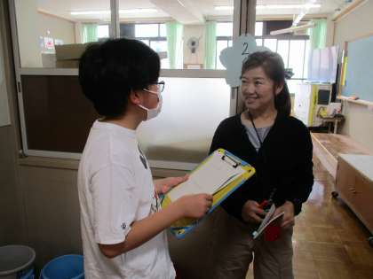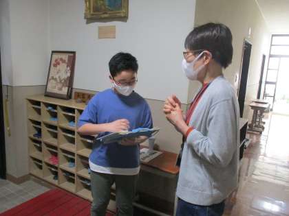 相手の答えと自分の考えを比較しながら相手の話を聞くことや、正しい言葉遣いを意識して、話を広げたり深めたりするインタビューに挑戦しています。