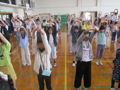 今日は、体育館で音楽・ヨガ体験をしました。