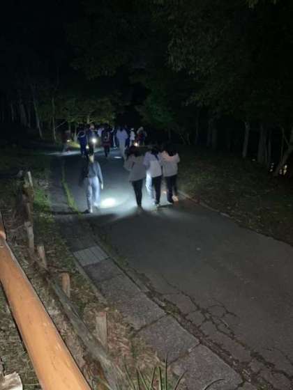 真っ暗闇の山の中 「ビクビク・ドキドキ」「ちょっとワクワク」しながら歩きました。