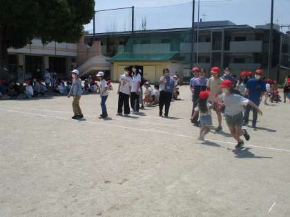 走っている1年生を全力で応援したり、1年生から「6年生は速い。」と褒められたり、1年生と共に楽しい思い出ができました。
