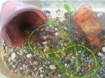 わかば学級に1匹のざりがにがいます。「つきおみくん」です。水草が大好きで毎日よく食べます。夏休みは、だれかのお家に行く予定です。