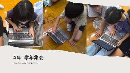 多目的室に4年生全員が集まって、2学期の行事予定を確認しました。