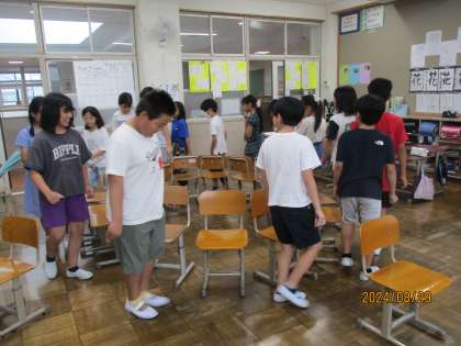 そんな中、中間休みには、教室でみんな遊びを楽しむ姿がありました。今日は椅子取りゲームです。笑顔いっぱいに友達とゲームを楽しんでいました。