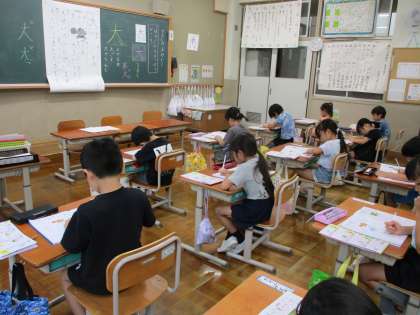 2学期が始まり、1年生では漢字の学習も始まりました。漢字ドリルや漢字学習ノートを配ると、嬉しそうに見る子どもたちです。「この字知ってる!」「わたしの名前の字がある!」など漢字の学習を楽しみにしている様子も見られました。