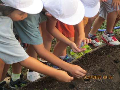 大根の種まきをしました。冬に大きな大根が収穫できるといいなと思います。