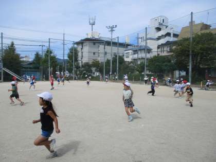 運動委員会が中間休みに1・2年生のふえおにを企画してくれました。各クラス3名ずつのおにからスタートしました。あっという間にみんなおにになってしまいました。1・2年生で仲良く遊ぶことができました。