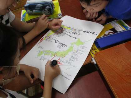社会科では「わたしたちのくらしと工業生産」について学習しています。この日は地図やグラフなどの資料をもとに、日本の工業生産の分布と特色について考えました。グループ活動することで、いろいろな視点から考えることができました。