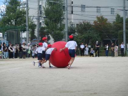 大玉転がしです。最後の最後まで大接戦でした!!