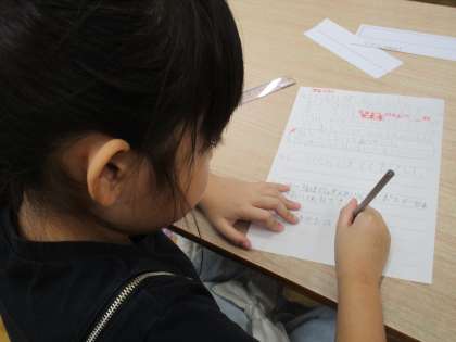わかば学級では、4人の音楽隊の名前を全校募集することになりました。みんなで話し合って、ポスターを描き、放送でお知らせして募集箱に入れてもらうことにしました。それぞれ自分で考えて募集のポスターを描きました。また、自分の担当の放送原稿を考えました。それから、応募用紙をみんなで手書きで作り、わかば学級の前と図書館の前に設置しました。放送は10月16日(水)の給食時間にします。素敵な名前がたくさん集まることを願っています。