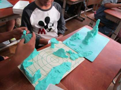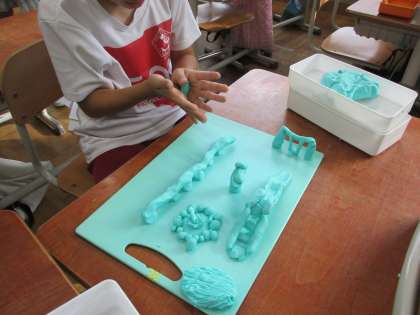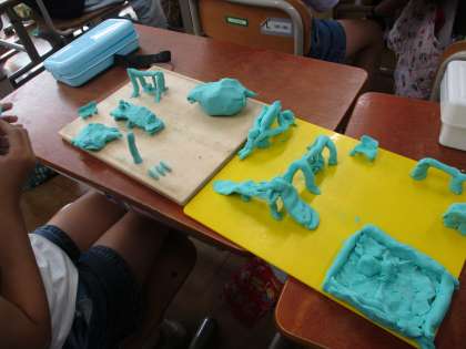 図画工作で、ねん土を使って私だけの町をつくりました。