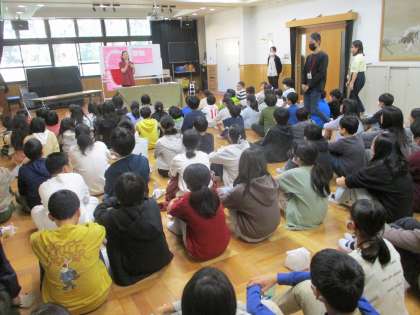 3時間目に5年生と合同で歯科衛生士さんに歯みがき指導をしていただきました。