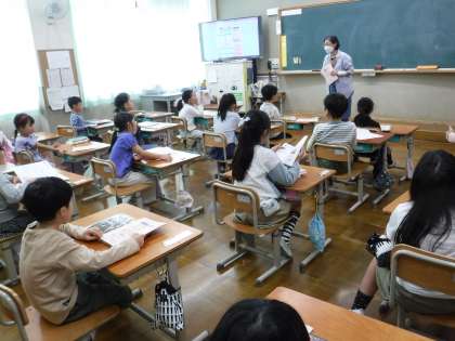 これまで図書館で借りた本を返す際は、1年生専用のワゴンに返し、図書館司書の先生や高学年の図書委員さん達が、本棚に返却してくれていました。今週の図書館の学習で、本には住所があることを教えてもらい、自分で本棚に返す練習をしました。