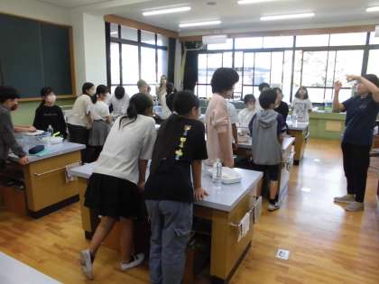 一定の量の水を継続して流す,というのが意外と難しいようで,ドバっと入ってしまったり,水を止めてしまったりと,苦労している姿もありましたが,声を掛け合って丁寧に実験に取り組んでいました。