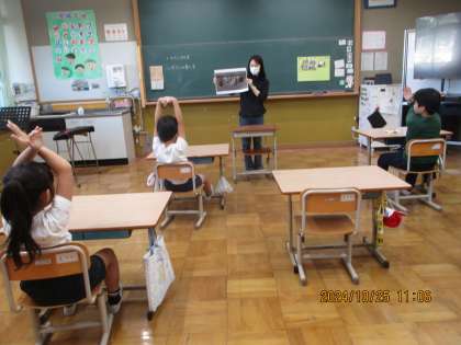 今日は立命館大学の学生さんの福田さんに「もったいない苗」の世話の仕方を教えてもらいました。野菜クイズの〇×問題はなかなか正解がでませんでした。肥料や水のやり方のも野菜によって違うことも知りました。これから、みんなで世話をがんばっていきたいです。