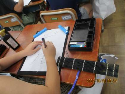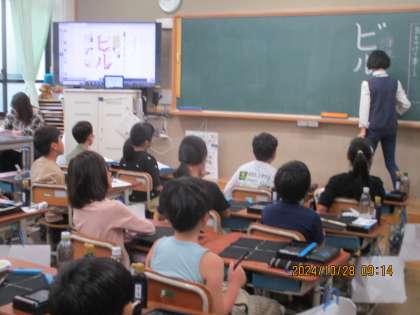 3年生の書道の時間です。みんなの集中力がすごく、だれもおしゃべりしないで取り組み担当の先生からもたくさんもほめていただきました。