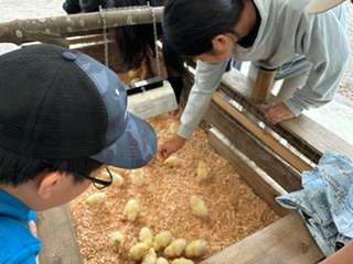 1人1カップのエサをいただき、どの動物にあげるか迷っています。