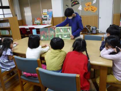 今日から読書週間ということで、中間休みに図書委員さんが5つのブースに分かれて読み聞かせをしてくれました。1年生は全員図書館に行き、好きな本の読み聞かせブースに分かれました。子ども達は目を輝かせて物語の世界に入っていました。