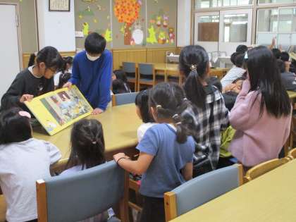 5日火曜日の朝学習は先生たちによる読み聞かせでした。2年1組は山本先生、2組は宮井先生に読み聞かせをしてもらいました。中間休みは図書委員会による読み聞かせが図書館でありました。今週は読書に関するイベントがたくさんありますので、お楽しみに。