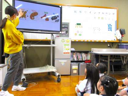 また夏休み明けに実施した「生活点検」をふまえて、保健室の尾崎先生から排便の大切さについてお話をしていただきました。毎朝トイレに行くこと、水分や野菜をしっかり摂ることなどに気をつけると、排便の習慣がつき、健康な生活が送れるということを聞きました。