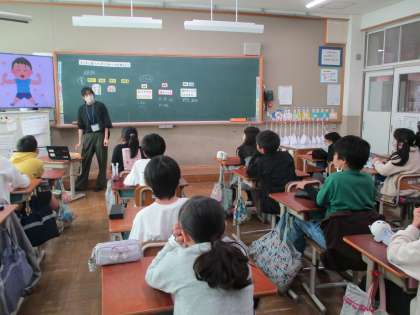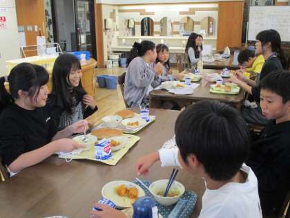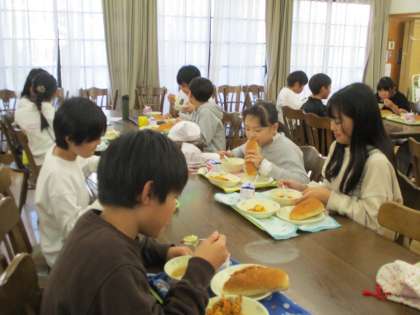 食についての学習をしました。体の組織の更新や成長のためにはしっかりと食事をし、栄養をとることが大切だということを学びました。高学年では大人と変わらないぐらいのカロリーが必要と知り、驚く様子も見られました。給食時間にはランチールームでみんなで楽しく給食を食べました。