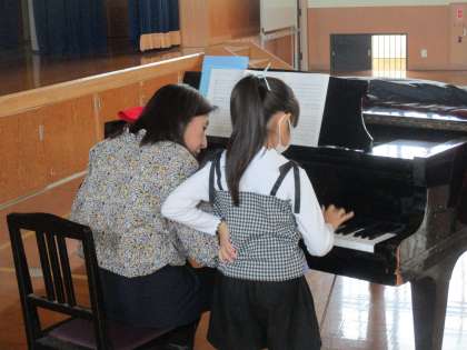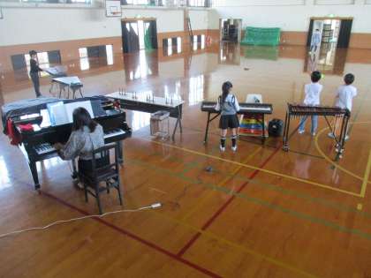 11月11日(月)、体育間で音楽科スクールサポーターの先生に入っていただき、合奏練習をしました。本番と同じようにピアノを弾いてもらって合奏しました。体育館では音の広がりもあって少しずれが生じてしまいました。ピアノや友達の音をよく聞いて合わすことに気をつけることを確認して練習しました。また、個別でも教えてもらいうまくいかないところを練習しました。本番では、みんなで楽しく合わせて演奏したいと思います。