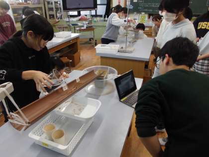モデル実験では,水の流し方にコツがいるのですが,どの班も上手に水を流して無事に実験を成功させることができていました。