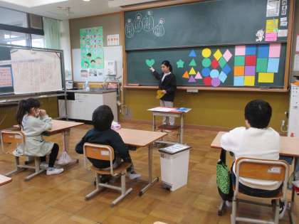 フェイ先生と一緒に外国語の活動をしました。形と色の言い方を合わせて学習しました。何回もフェイ先生が聞いてくださるので繰り返しながら楽しく学ぶことができました。