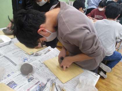 地域の陶芸家の先生に来ていただき、陶芸体験を行いました。自分の思いを作品に込めて、取り組んでいました。