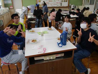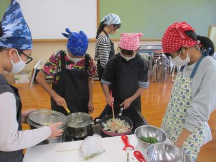 12月4日(水)は、2組が栄養バランスを考え、環境にも気を配りながら調理実習を行いました。