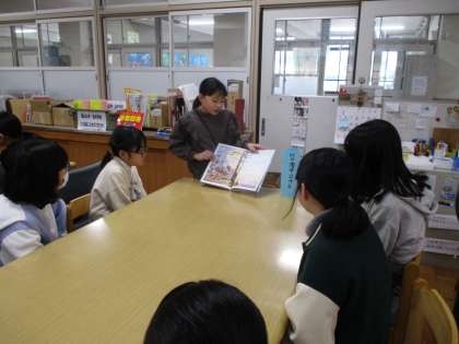 16日の中間休みにぽぽんたさんによる読み聞かせ、17日の中間休みに図書委員会による読み聞かせがありました。
