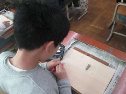 図画工作科では「版で広がるわたしの思い」の学習に取り組んでいます。今年は「小学校生活で一番輝いた自分」を版に表します。それぞれ選んだ場面が全然違うので、完成が楽しみです。