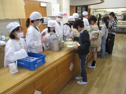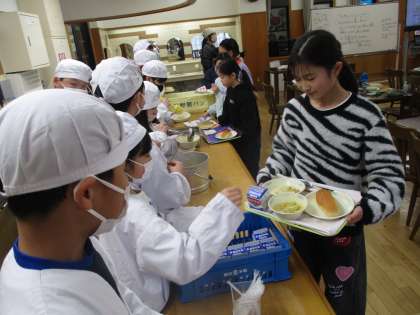 4年生 ランチルームで給食を食べました