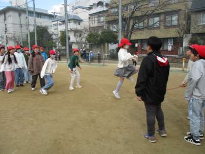 高学年の大縄とび大会が行われました。今年度2回目ということで、前回の記録をこえることはもちろん、クラスみんなで楽しく取り組むことを目標にがんばりました。どちらのクラスも和気あいあいと楽しく記録に挑戦することができ、クラスの仲も一層深まったようでした。
